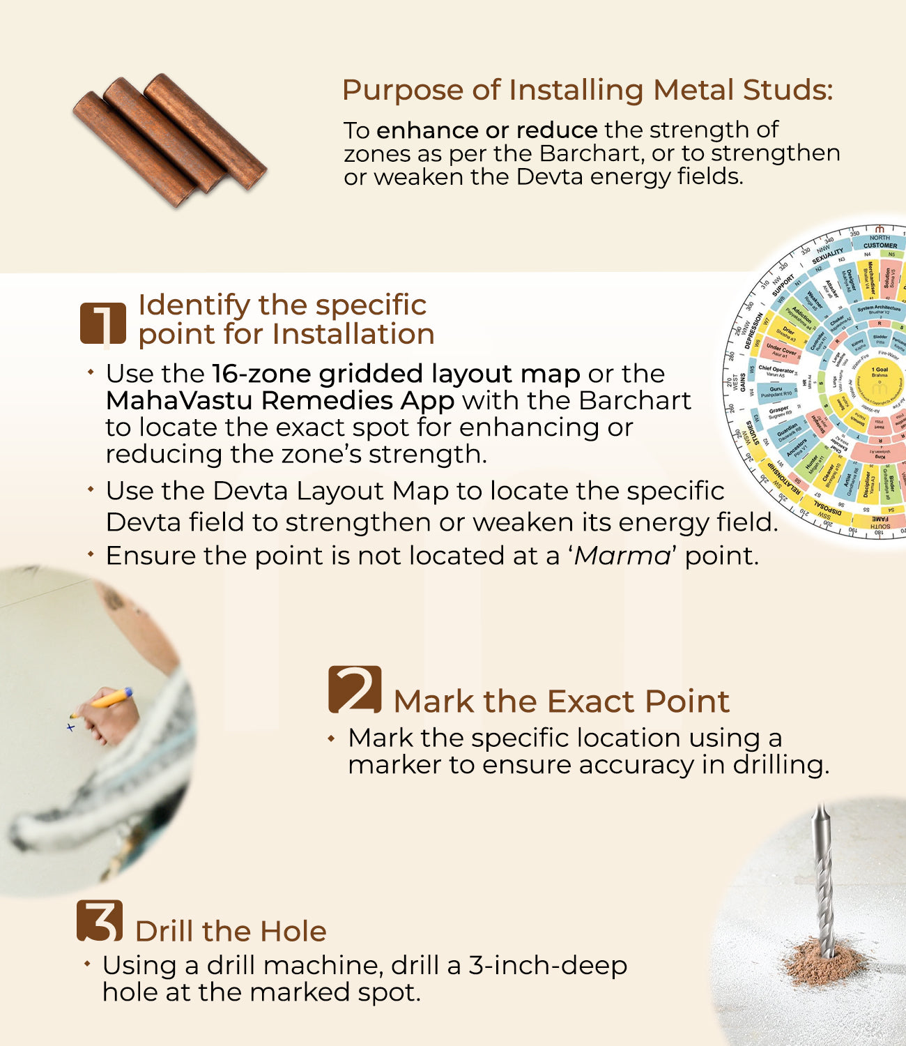 Metal studs are used to enhance or reduce the strength of zones or Devta energy fields.